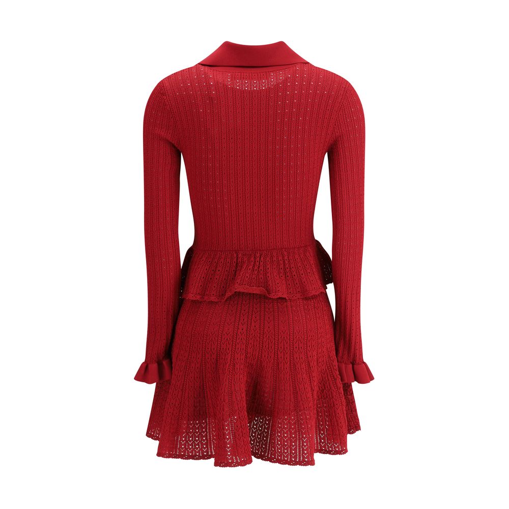Self-Portrait’s Pointelle Knit Short Dress is a feminine and sophisticated piece with handcrafted charm. Crafted with a delicate crochet design, it features a front button closure and two patch pockets on the chest. Gold-colored buttons add a touch of light and sophistication, completing a look with a romantic and contemporary flair.