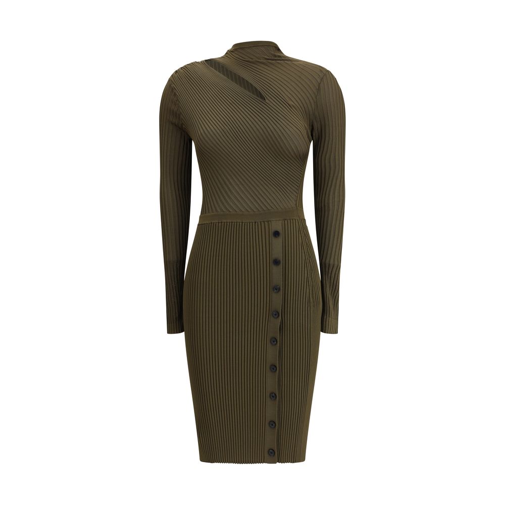Self-Portrait’s ribbed midi Dress is a refined and contemporary piece. Featuring long sleeves and decorative buttons on the skirt, it features a cut-out detail on the shoulder that adds a touch of originality and femininity to the design, making it perfect for sophisticated, modern looks.