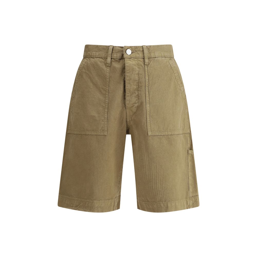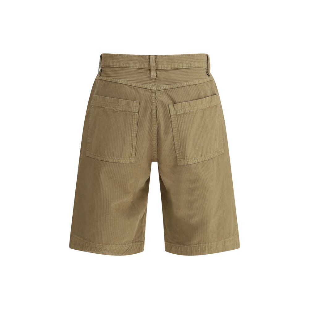 Sunflower’s cotton Work Shorts combine practicality and style in a modern, functional design. The front button fastening gives a sleek, neat look. Two patch welt pockets on the front offer extra storage for essentials, while patch slit pockets on the back add a touch of utility and style. Belt loops at the waist allow you to add an accessory to personalize your look. A distinctive detail is the "worker pocket" on the side panel, which recalls a more casual, utilitarian aesthetic. The vertical stripe pattern gives a dynamic, contemporary effect, perfect for a sophisticated yet practical summer look.