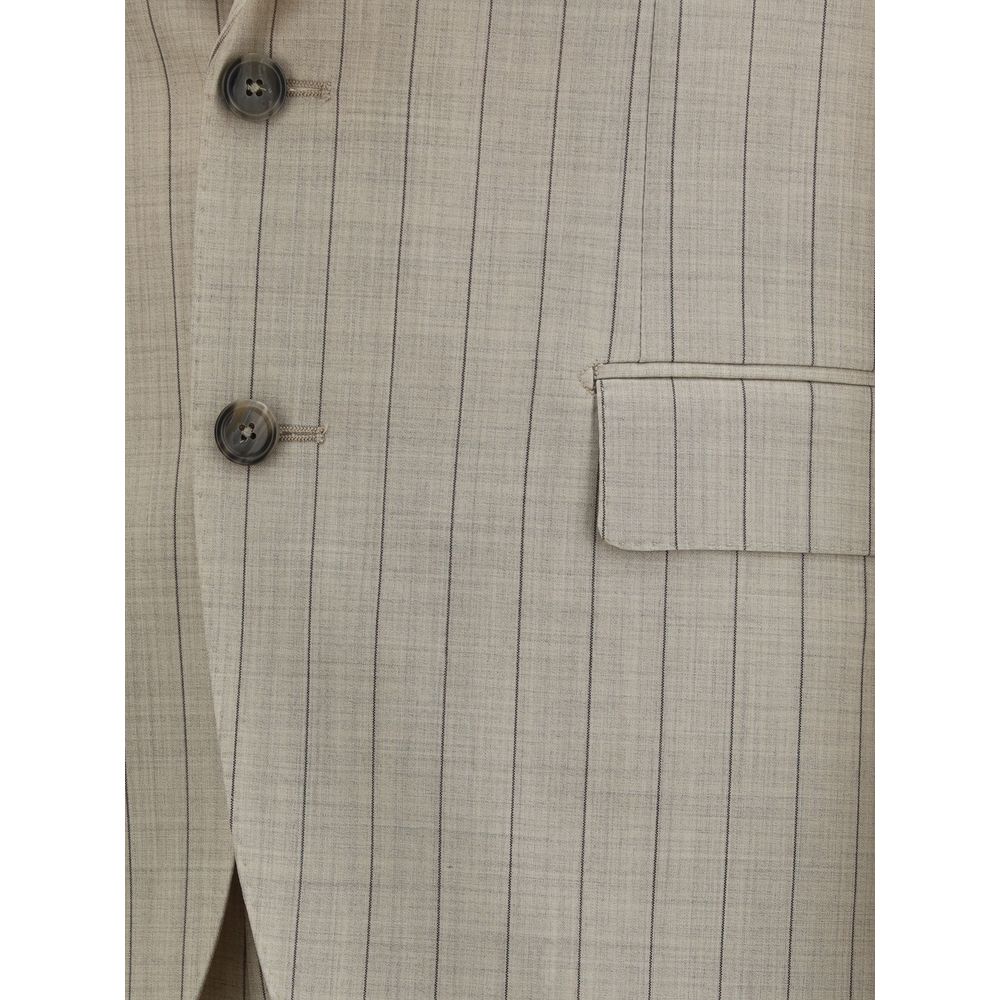 Tagliatore’s Vesuvio Pinstripe Suit is a refined and elegant interpretation of the classic men’s suit. Featuring a wide lapel, the jacket has the brand’s distinctive plaque applied to the lapel, underscoring its authenticity and prestige. The single-breasted button closure and two front welt flap pockets lend a sophisticated and functional look, while the welt breast pocket adds an additional classy detail. The straight pants, with front zipper and button closure, offer an impeccable fit and a slim silhouette, enhanced by two side welt pockets and two back welt pockets. Belt loops on the waistband complete the look, allowing you to customize the fit. The pinstripe pattern adds a touch of timeless elegance, making this suit ideal for formal occasions or a business-chic look.