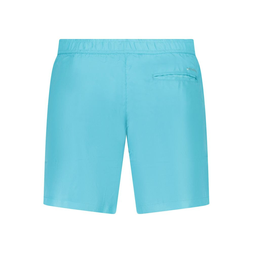 MILAN LOGO SWIM BOXER, INSIDE WITH SLIP, ELASTIC WAIST WITH LACES, 1 POCKET, 1 BACK POCKET, CONTRASTING DETAILS, PRINT, LOGO