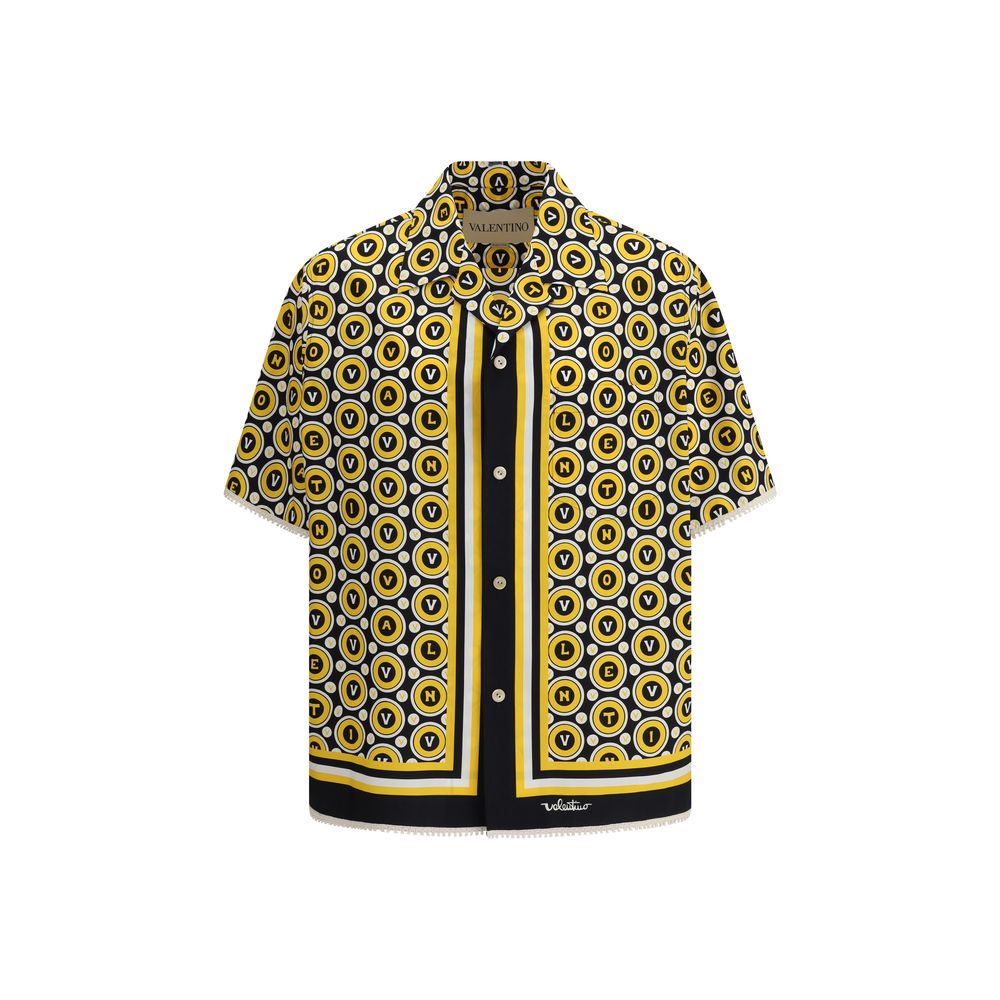 Cotton Bulles Royales bowling Shirt by Valentino has a refined and relaxed design. The design features a Cuban-style collar, front button closure and short sleeves. An applique welt pocket on the front adds functionality, while the hem is embellished with crochet embroidery that lends a handcrafted and refined touch.