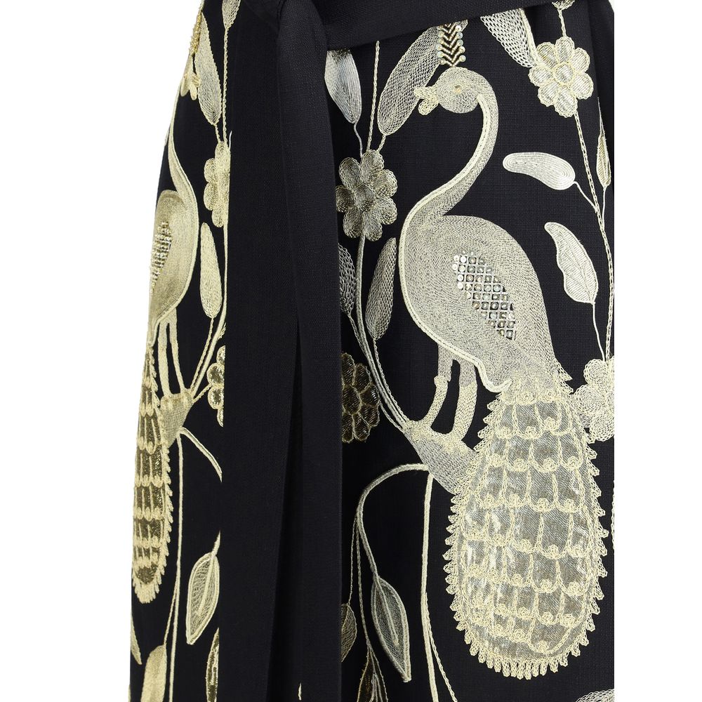 Valentino’s embroidered long Vest is an extraordinary garment that blends elegance and sartorial artistry. With a frog front closure, it features a hemline embellished with tassel appliqués, enhancing its movement. The built-in fringed scarf adds a touch of sophistication, while gold embroidery, inspired by nature, gives a rich and sophisticated visual effect. A uniquely styled garment, perfect for those seeking a distinctive and classy look.
