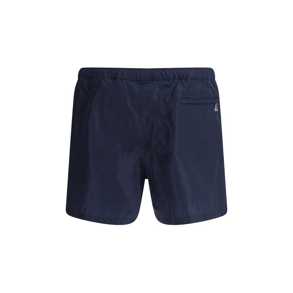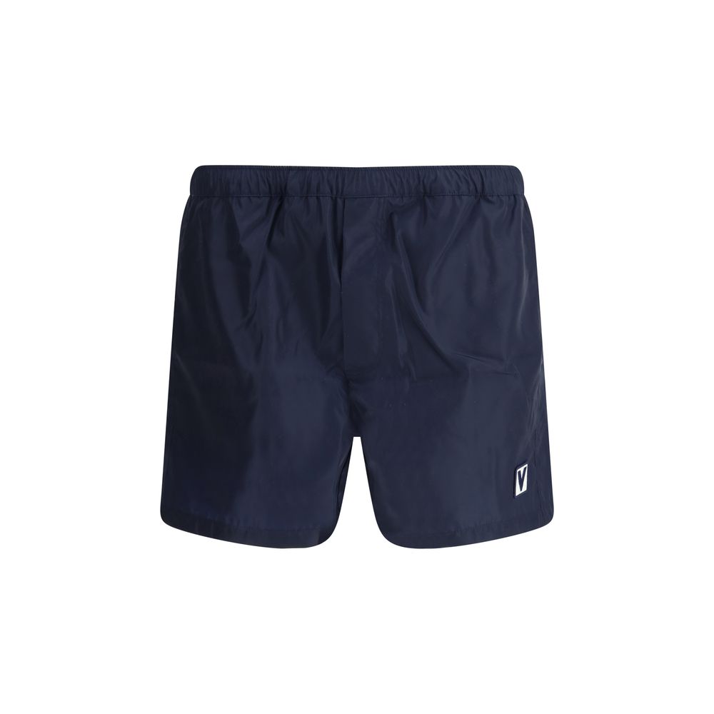 Valentino’s Swimshorts features an adjustable drawstring elastic waistband for a customizable fit. Two side welt pockets offer practicality, while a zippered slit pocket on the back adds functionality. The brand’s iconic logo patch applied to the front completes the design, giving it a distinctive and recognizable touch. A stylish and functional design, perfect for the summer season.