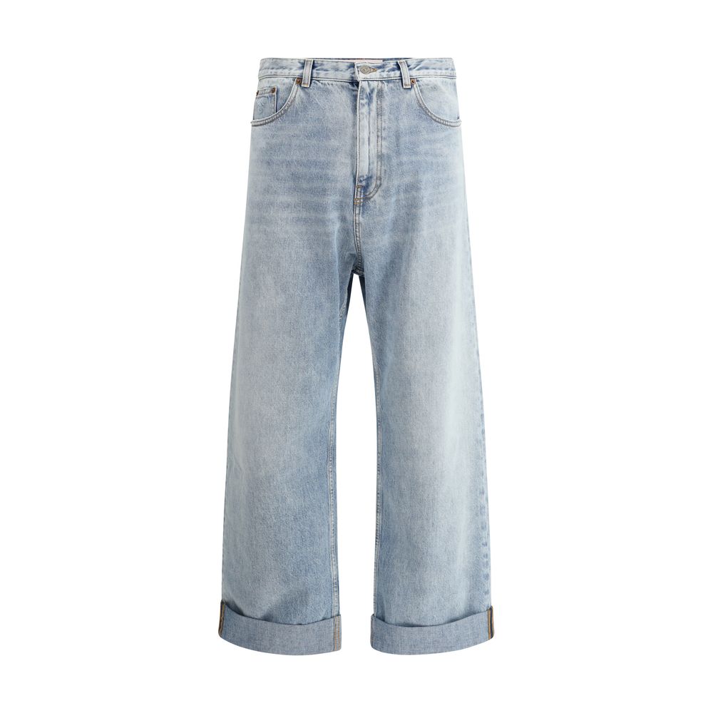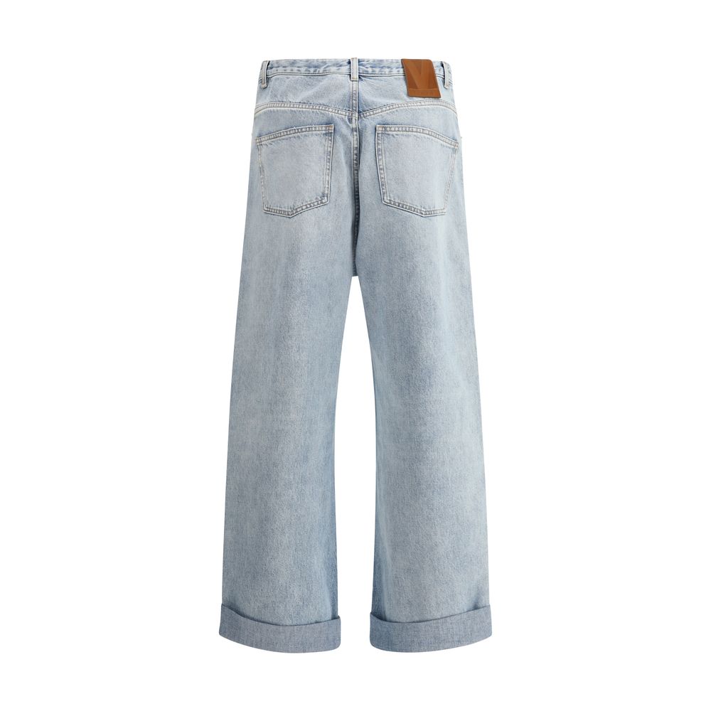 Valentino’s cotton Jeans are a relaxed baggy design with five pockets for optimal functionality. The front closure is zipper and button, while the waistband has belt loops. A logoed leather patch applied to the back adds a distinctive touch. A turn-up hem completes the look, giving the garment a modern and stylish accent.
