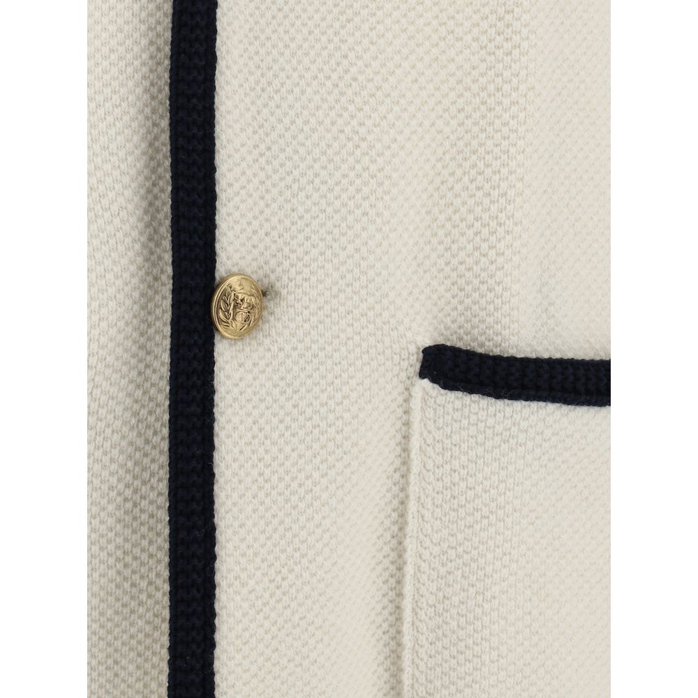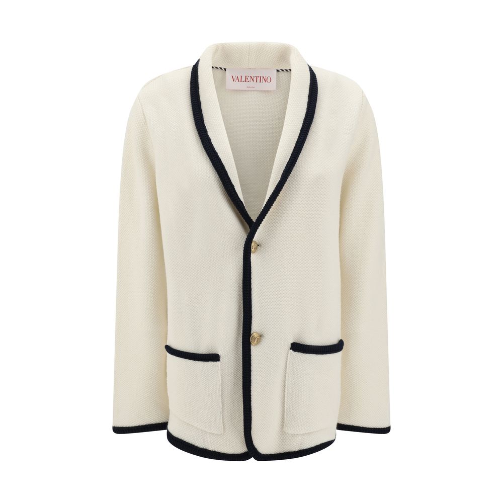 Valentino’s Knit Jacket is a piece that blends elegance and comfort in a sophisticated, contemporary design. Shawl lapels and a single-breasted front closure with embossed buttons lend a refined, structured look, while contrasting hems add a detail of modernity and style. The two side patch pockets offer practicality without compromising aesthetics. Perfect for a chic yet comfortable look, this jacket is ideal for pairing with dress pants or even denim for a versatile outfit suitable for both formal and more casual occasions.