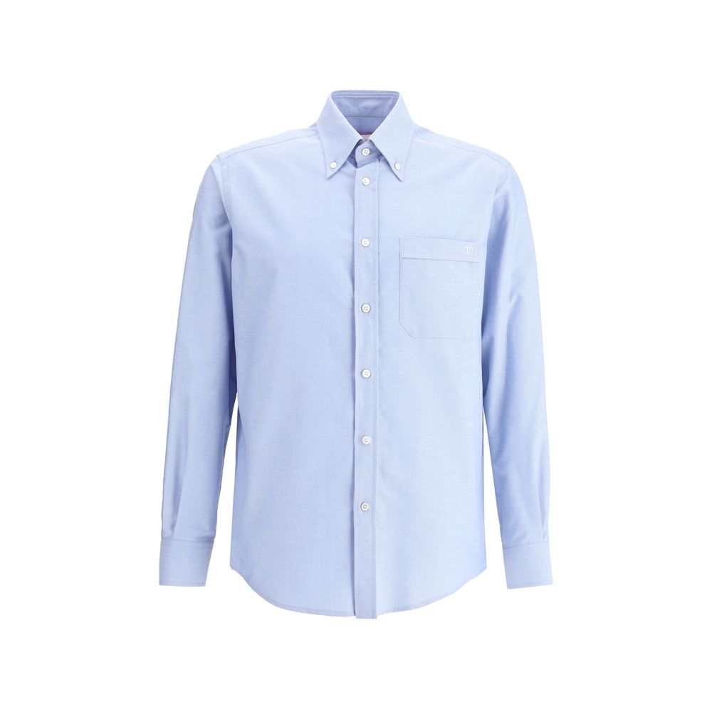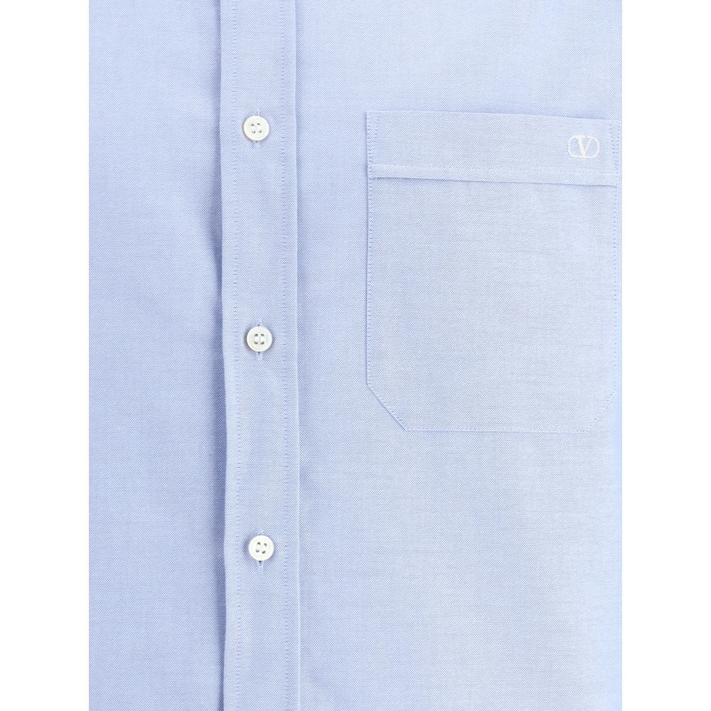 Cotton Shirt by Valentino featuring classic collar, front button closure, front patch pocket with contrasting embroidered iconic brand logo, adjustable button cuffs, monochrome pattern, regular fit.