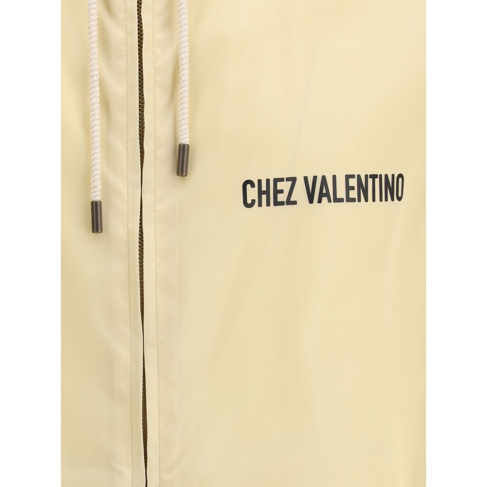 Valentino’s waterproof Jacket is the perfect balance of functionality and style. Featuring a front zipper closure, it offers a drawstring-adjustable hood design for extra protection against the rain. The two side welt pockets add practicality, while the brand’s iconic monogram printed on the front and the iconic brand logo printed on the back lend a distinctive and recognizable touch.