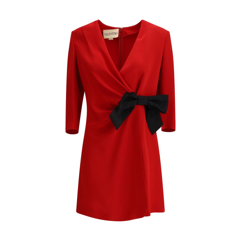 The Short Silk Dress with Bow by Valentino Garavani embodies the sophisticated elegance of the maison’s ready-to-wear. Crafted in red silk, the essential silhouette is enriched by a faille fabric bow that adds a refined and striking detail. The back zip closure ensures a clean line, enhancing the lightness and fluidity of the piece.