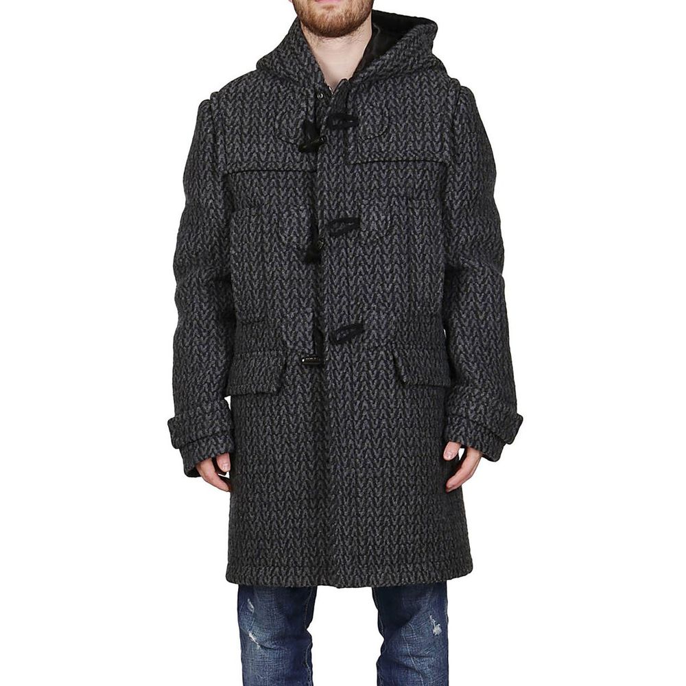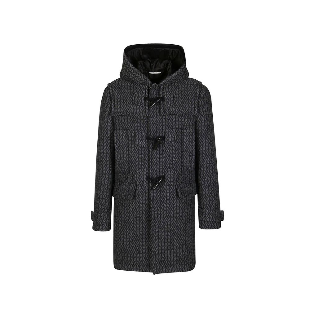 – Composition: 96% wool, 3% silk, 1% polyamide – fully lined – zip closure – two side slip pockets – two pockets with flap – non detachable hood – all over Vlogo detail – dry wash – made in Italy –-