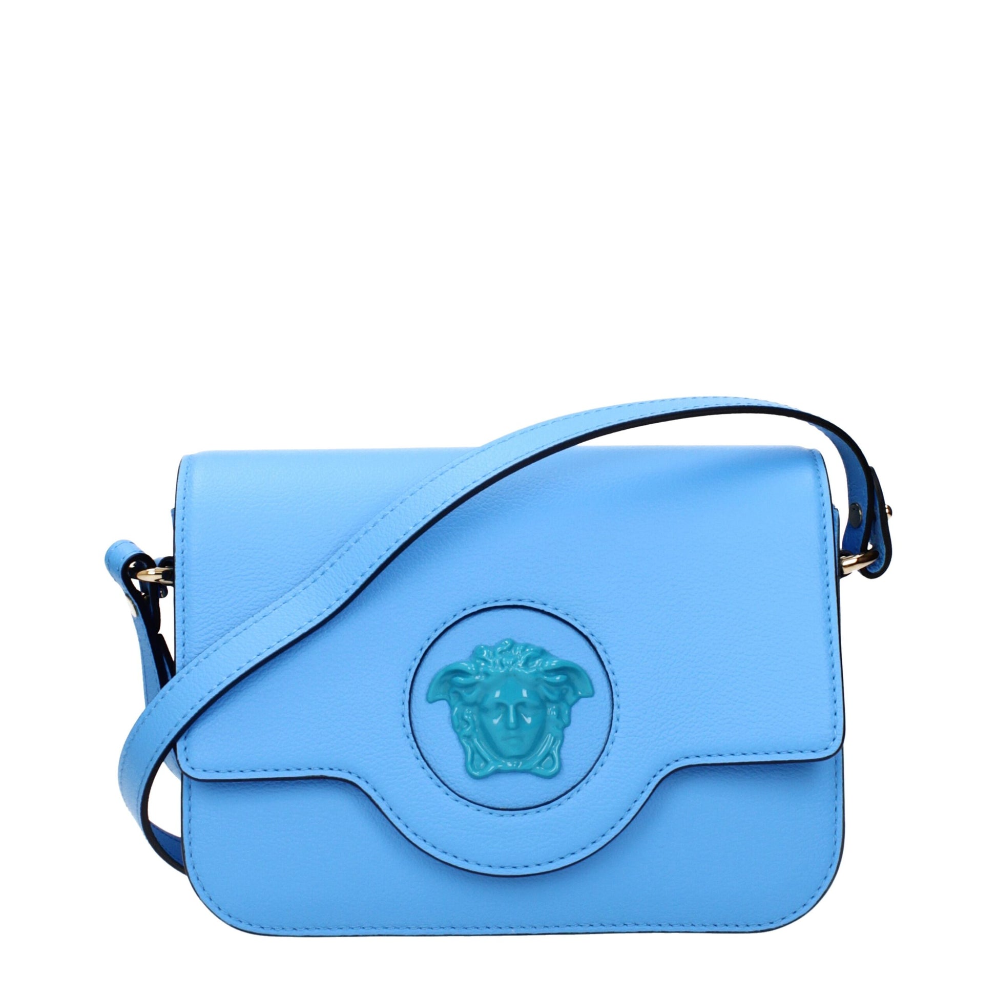 The product with MPN 1008100DVIT2T1U38V and code F84032 leather in heavenly is a crossbody bags designed by Versace. It has features like front detail, adjustable shoulder, removable shoulder.-
