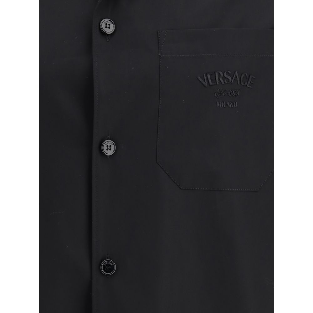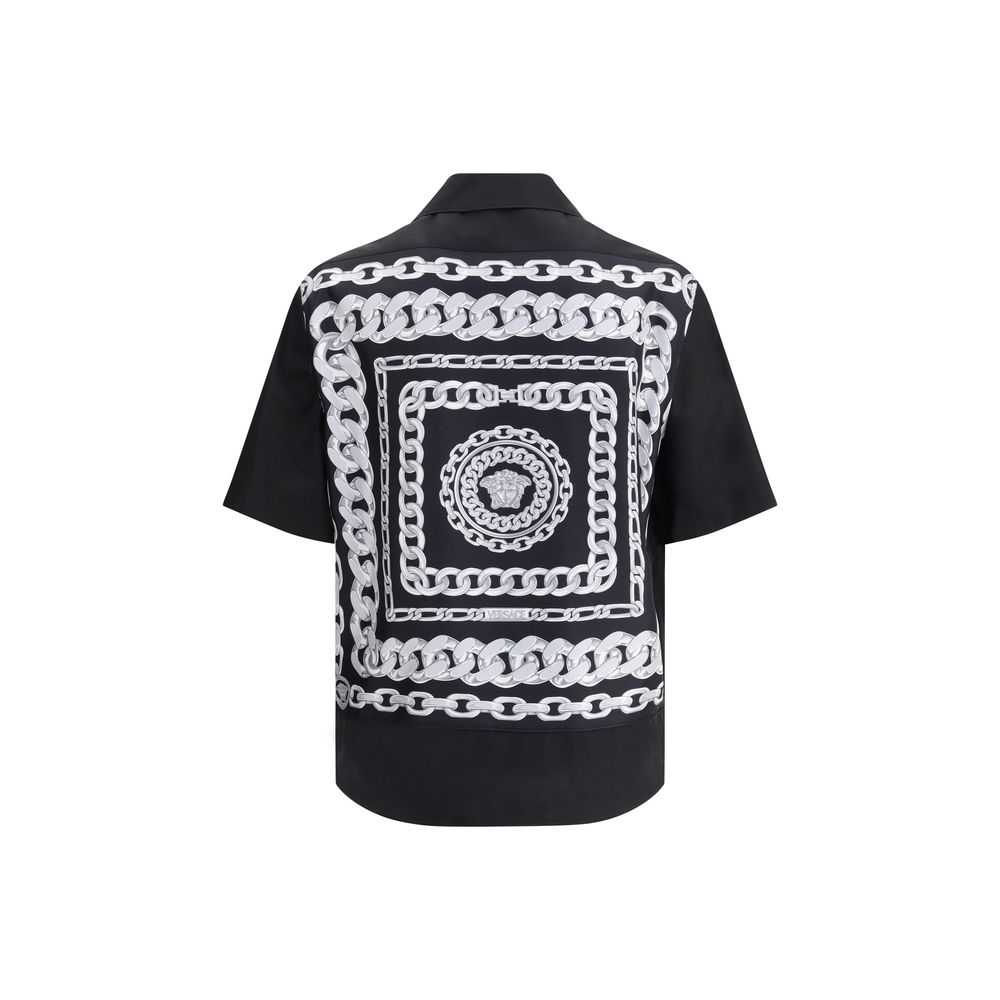 Versace’s Cotton Shirt is an elegant and distinctive garment that reflects the brand’s iconic style. It is a short-sleeved model, perfect for the summer season, with a design that combines comfort and luxury. The classic collar adds a touch of elegance, while the front patch pocket is a practical and discreet detail. The brand’s iconic logo is applied on the front, making the garment instantly recognizable. On the back, the printed Medusa pattern adds a bold and distinctive touch, symbolizing the iconic Versace style.
