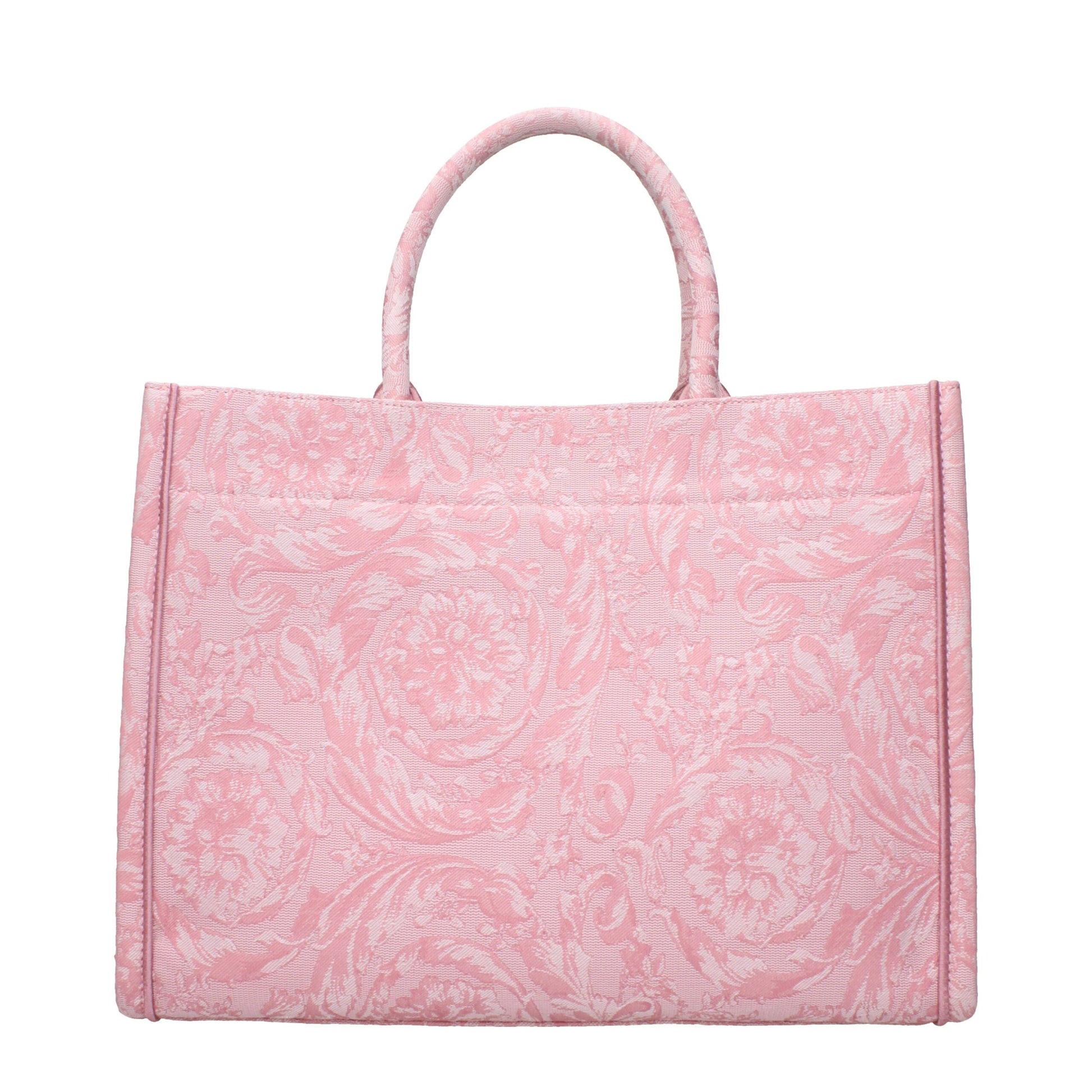 The product with MPN 10115621A097412PQ2V and code F82407 fabric in pink is a handbags designed by Versace. It has features like front logo, embellishment may vary, adjustable shoulder, removable shoulder.-