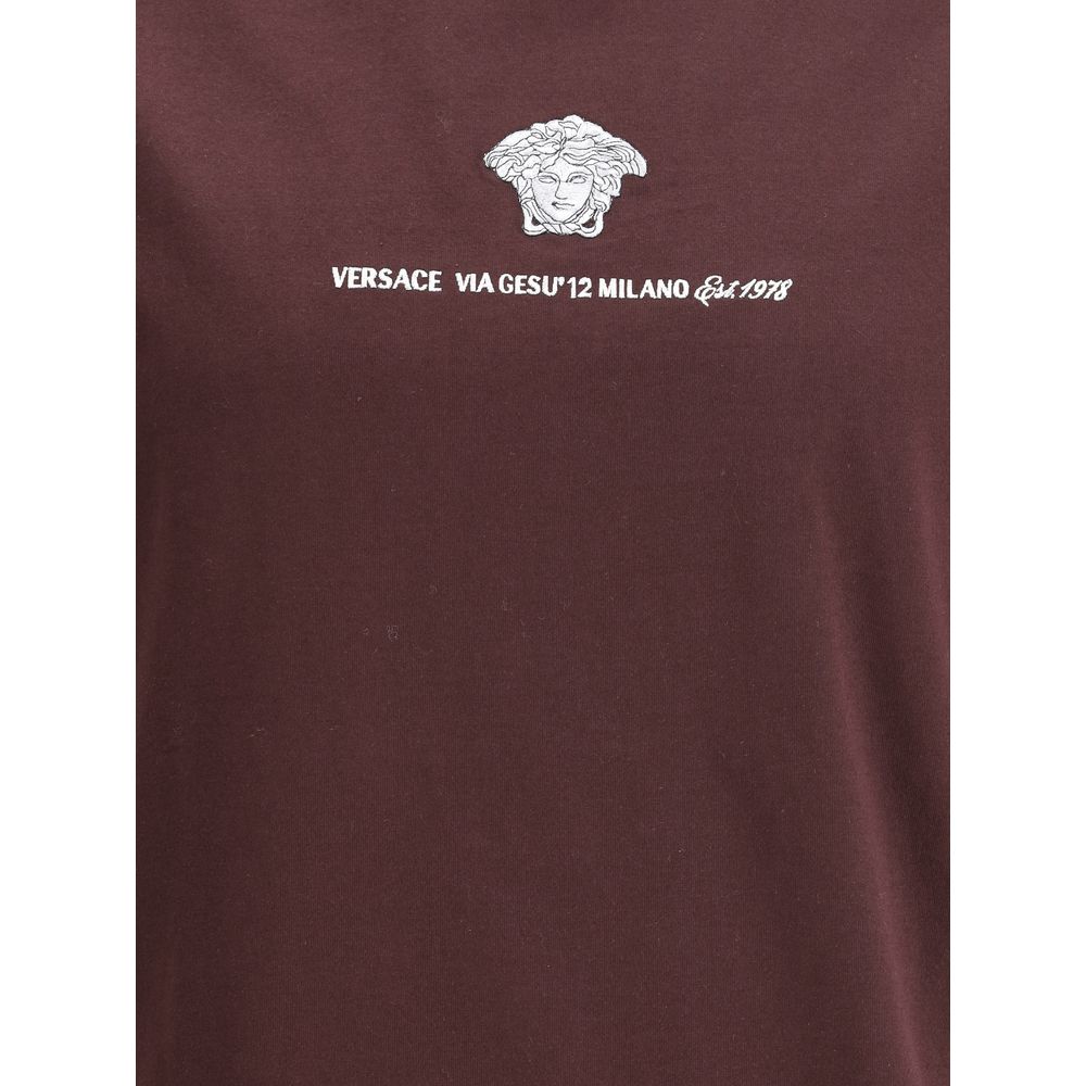Cotton T-Shirt by Versace, ribbed crew neck, contrasting iconic brand monogram on front, monochrome pattern, regular fit.